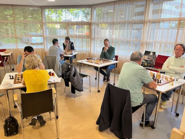 Het was niet goed voor mijn hart, die laatste ronde. Onnodig verlies tegen Andersen uit Woerden (1-3, alleen Viggo wint), we blijven op 8 matchpunten staan (4x gewonnen) en daardoor konden er ineens een paar ploegen toch nog haasje over. Dat gebeurt uiteindelijk niet, we plaatsten ons voor de finale via een 10e plaats. Onder dit verslag is de uitslag te vinden, waaruit blijkt hoe belangrijk de bordpunten zijn. Nrs. 9 t/m 13 hebben evenveel matchpunten, maar er kunnen maar 12 ploegen naar de finale en dus valt nr.13 met het minste aantal bordpunten. Elke partij, elk punt telt. Die 4-0 tegen Flierefluiter en de overwinning van Rocco tegen Michaël maken het verschil, naast de goede individuele prestaties van Max en Viggo (allebei 4 uit 6). Jonaël (3 uit 6 op bord 1) en Mo (2 uit 5, op bord 3 en 4) scoren ook belangrijke punten.