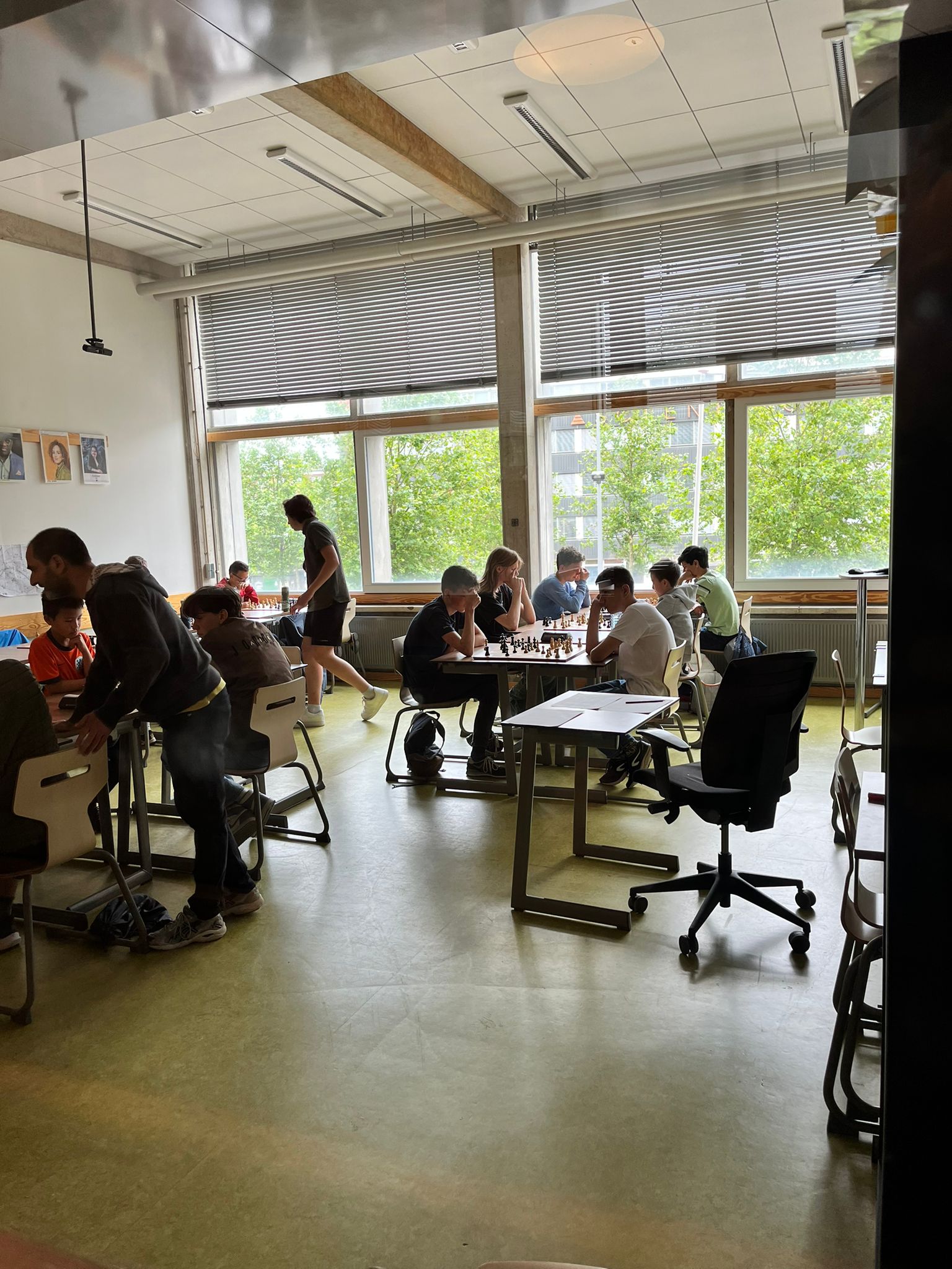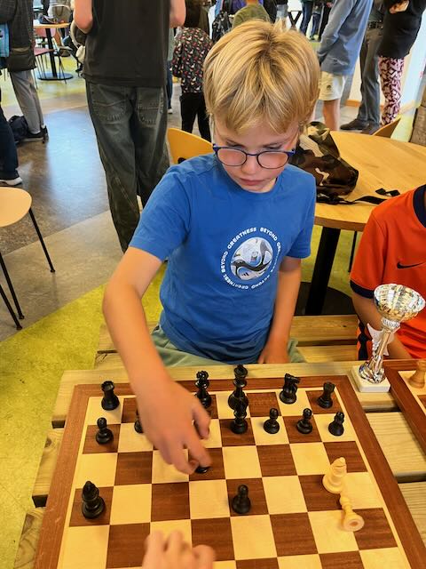 In de 2e groep spelen diverse MSK-ers. Leandro heeft een moeilijke dag qua resultaten en pech met scheidsrechterlijke beslissingen. Ook hij was de laagste qua rating, 1 uit 7 lijkt dan logisch maar er had meer ingezeten. Taeke haalde ook 1 uit 7 en was desondanks blij met de middag. Jonaël werd gedeeld 1e (met Tako en Yuvan) maar omdat hij van allebei had verloren, kreeg hij de beker voor de 3e plaats. Prima resultaat.