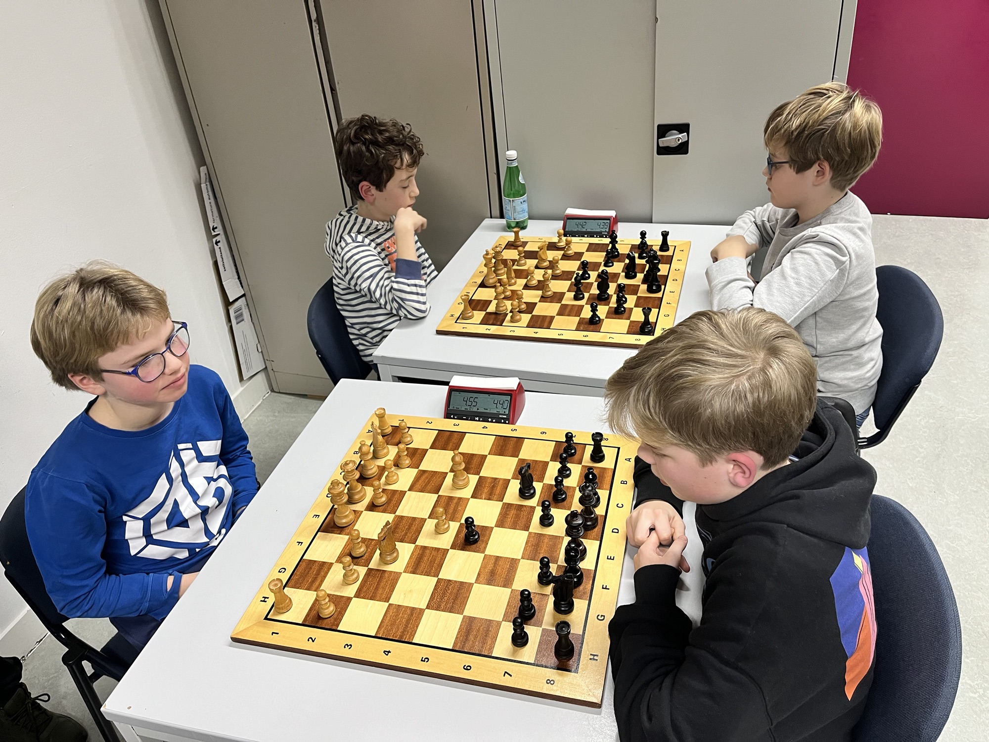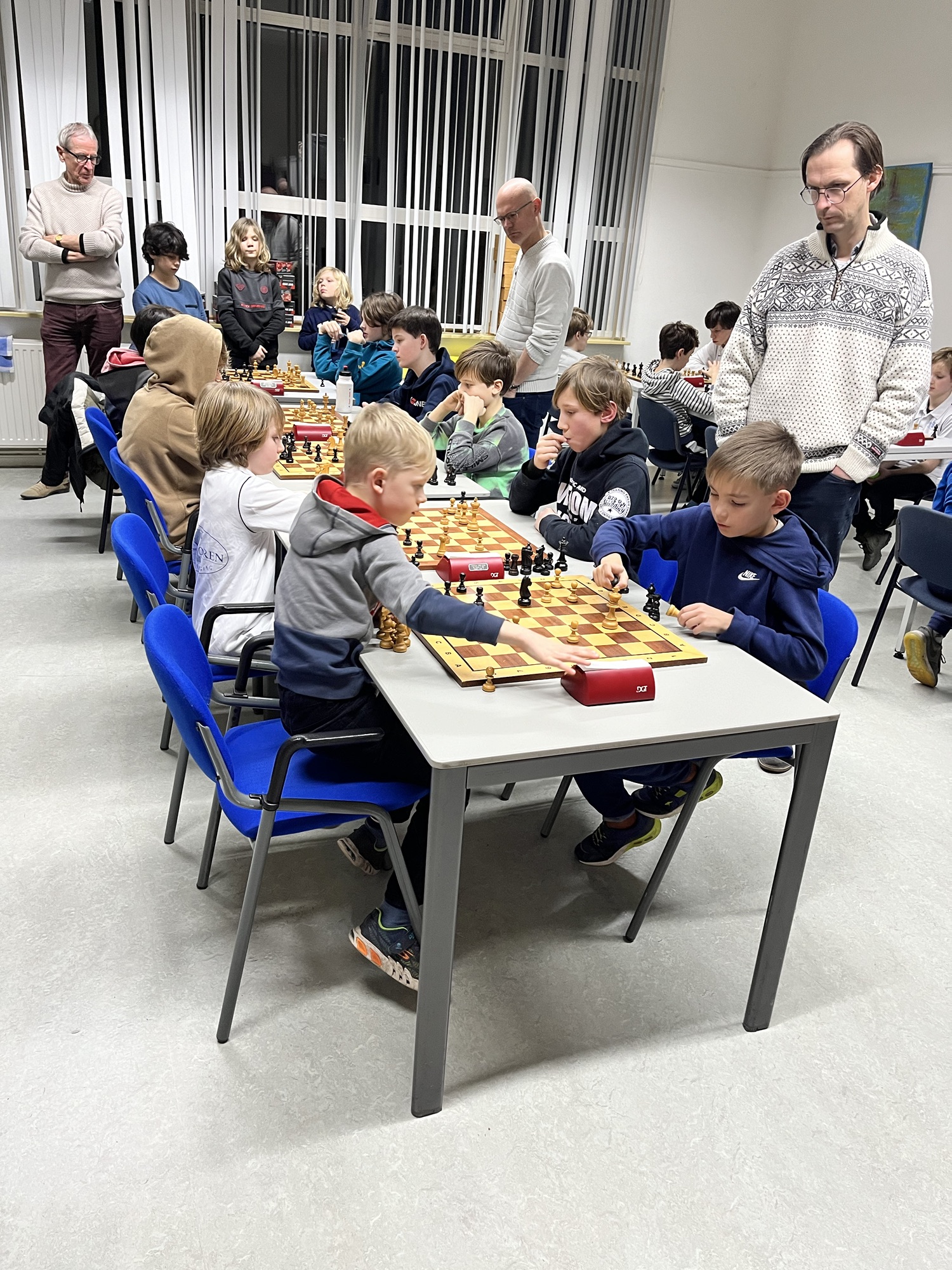 Een drukbezochte clubavond. 6 borden extern (het SGS zestal heeft 2,5 -3,5 verloren van Hoogland). 6 borden intern plus een mooie opkomst bij de jeugd. In de A groep van de jeugd staat Reijn 1e, Taeke 2e en Viggo 3e. In de B groep van de jeugd staat Jay 1e, Gijs 2e en Rhea 3e.