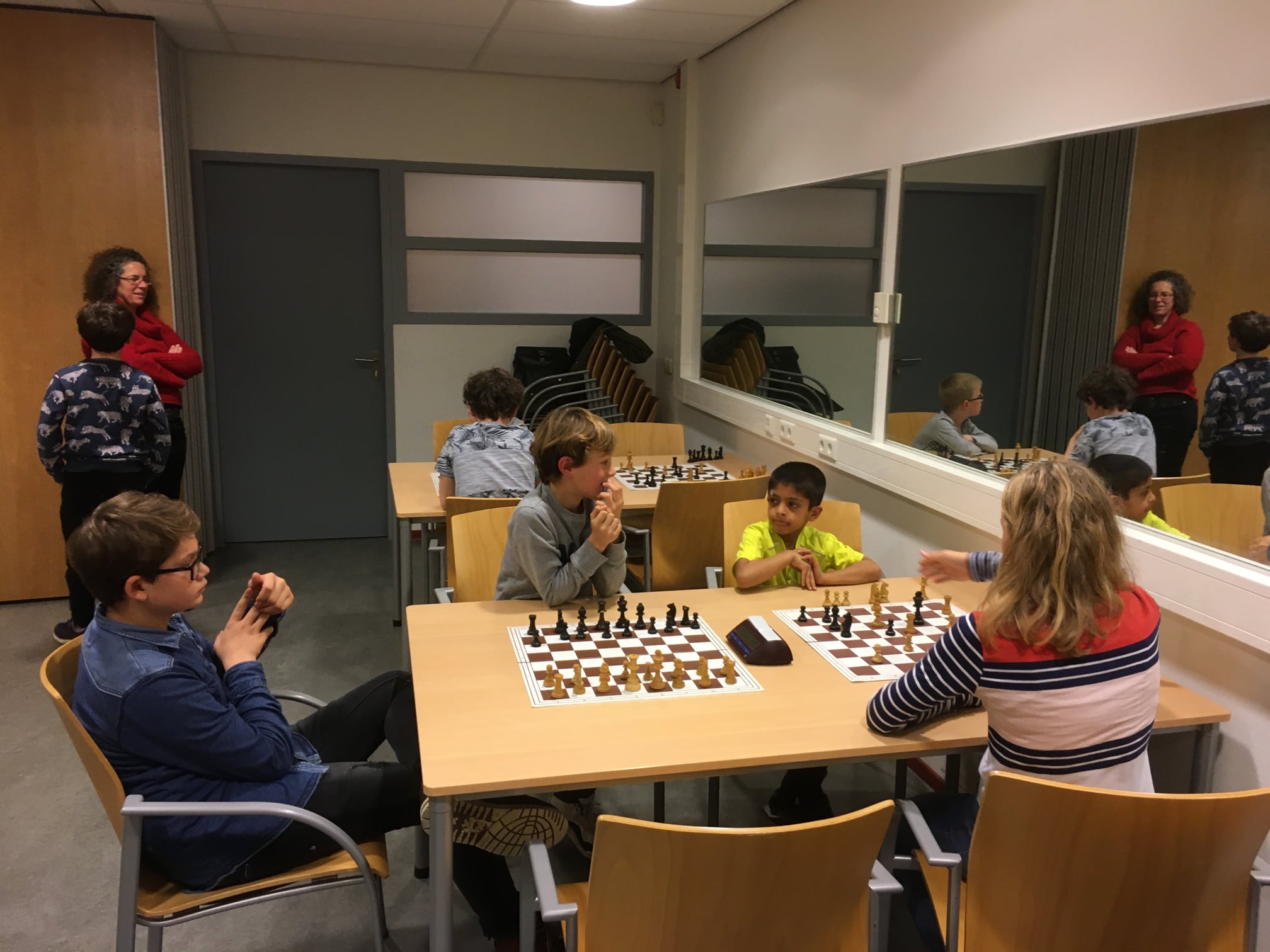 Luuk, Elmer, Ilian, Eli & Valentina troffen net als in de vorige wedstrijd (Zukertort) een jonge ploeg: Almere C3. Leeftijd zegt niet alles in het schaken, dat bleek wel op de borden. Iedereen moest hard werken voor de punten. Eli & Valentina speelden deze ronde 1 partij, Luuk, Ilian en Elmer speelden 2 partijen. Sommige spelers stonden achter maar wisten door miraculeuze zetten toch te winnen. Anderen speelden geduldig door met een kleine voorsprong die beetje bij beetje werd uitgebouwd en uiteindelijk in een overwinning kon worden omgezet.