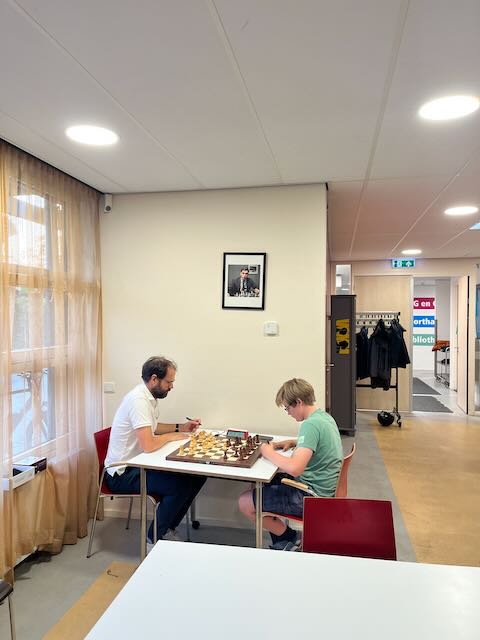 In groep 1 spelen 8 spelers die elkaar al meerdere keren zijn tegengekomen achter het bord met de 64 velden. Voor een aantal spelers die inmiddels al bij de Senioren spelen, is het ook een afscheidstoernee. Thomas (MSK) wint de groep met 6,5 uit 7, Ayden (Oosten Toren) wint van iedereen behalve van Thomas (dus 6 uit 7) en Keimpe (Oosten Toren) haalt 5 uit 7 (met een knappe remise tegen Thomas). Overige MSK’ers: Taeke 4e (3,5 punt), Leandro 5e (3), Jonaël 6e (2).