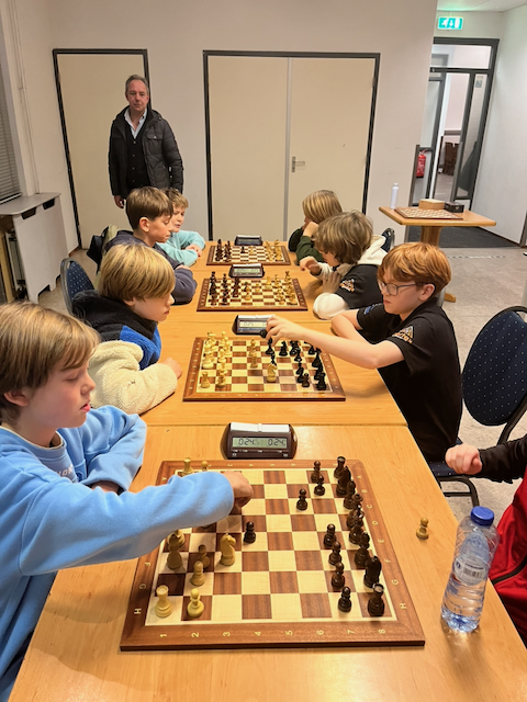 MSK/SCM A1 speelde thuis in de SGS jeugdteamcompetitie tegen Magnus A2 uit Leidsche Rijn/Utrecht. Een van de sterkere teams uit de afdeling. De start is niet zo geslaagd, als Bodhi (4) in de opening al een stuk kwijtraakt. Hij speelt lang door, maar kan een nederlaag niet voorkomen. Taeke (2) staat gelijkwaardig in de opening, ziet iets over het hoofd en hangt de rest van de partij in de touwen. Ook hij verliest, 0-2. Thomas op bord 1 speelt zoals altijd een solide partij, waarbij je weet dat hij een klein voordeel vaak weet om te zetten naar een winst in het eindspel. In de tussentijd staat Björn (3) er niet best voor in het eindspel. Hij houdt het dicht, maar staat materiaal achter. Totdat hij de kans op een vork krijgt en een toren terugwint. Vanaf dat moment heeft hij het initiatief en niet veel later geeft zijn tegenstander op: 1-2. En dan toont Thomas weer zijn klasse. In een eindspel met twee paarden tegen een toren en allebei wat pionnen, weet hij weer water uit een steen te persen en uiteindelijk het gelijkmakende punt te scoren: 2-2, alle zwartspelers winnen hun partij. Volgende wedstrijd (snel): 9 januari uit tegen Magnus A3.