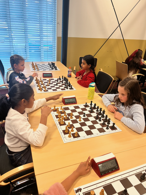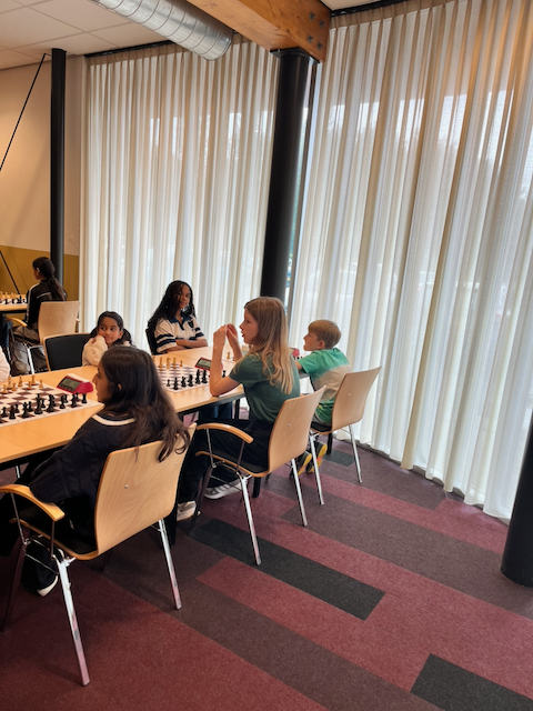 In de hoogste groep speelde Elisa een bijzonder toernooi. Een nederlaag in ronde 1 tegen Ella, winst op Ruth en vervolgens 2 nederlagen tegen Anika (Zukertort) en Sriharithra (Almere). Die 2 eindigen op plek 2 en 1. Maar door twee overwinningen in de resterende ronden (op Aalia en Samaira) haalt Elisa de beker voor de 3e plaats op (TPR 1432).