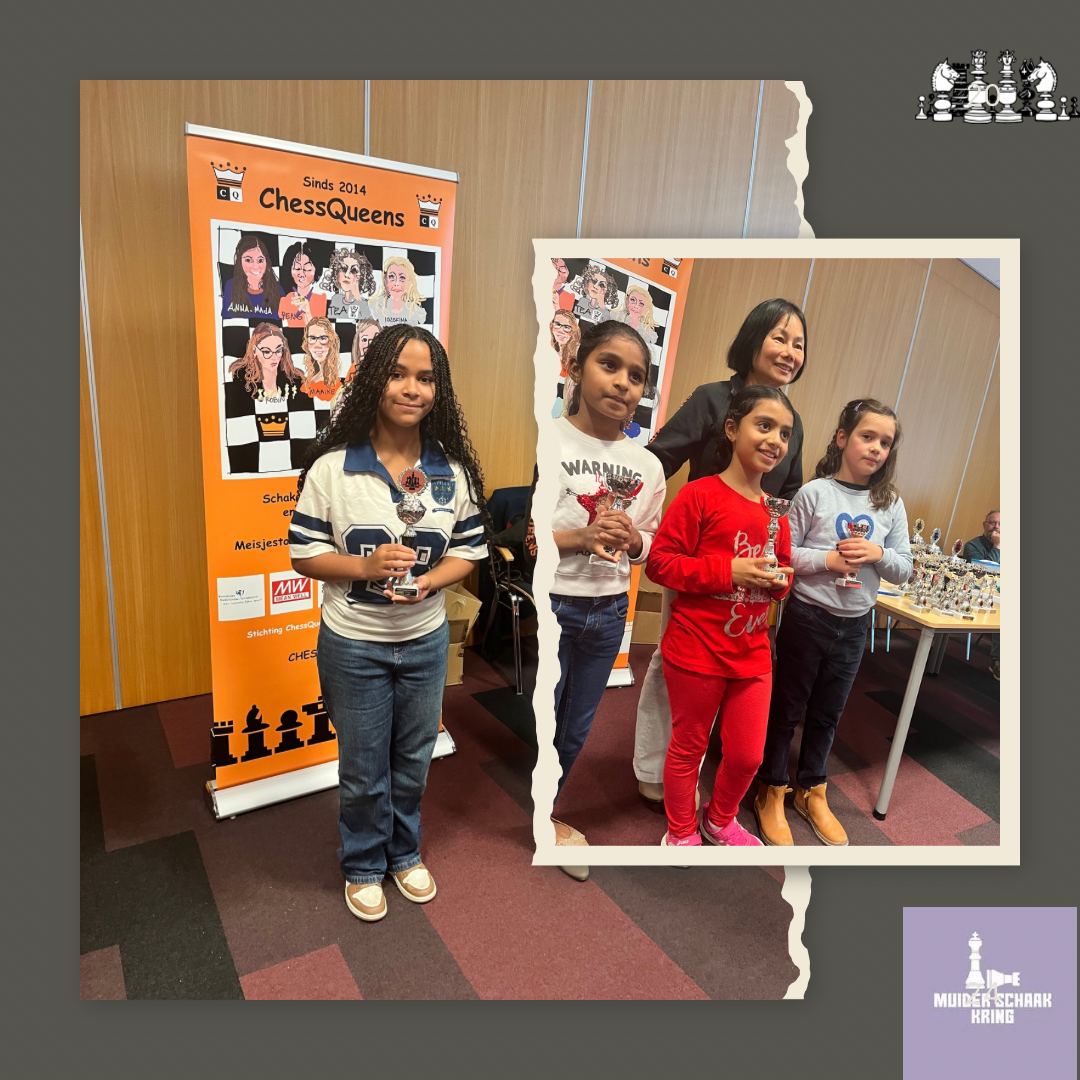Op zondag 5 oktober werd het Open Almeers Meisjes schaakkampioenschap georganiseerd, mede door ons dubbellid Pim Beers plus steun & toeverlaat Jarno Witkamp. Maar liefst 67 meisjes speelden mee, waaronder drie MSK Meiden. Jeevamithra is sinds kort lid van onze club en speelde haar eerste toernooi. Zij zat samen met Emma in groep 7. Beiden deden het bijzonder goed. Jeevamithra eindigde 2e, Emma werd 3e.
