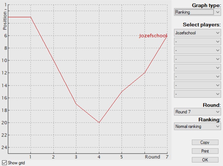 - Drieluik, 8e na 6 ronden met 7 wedstrijdpunten: speelt gelijk tegen Meidoorn en wordt 5e