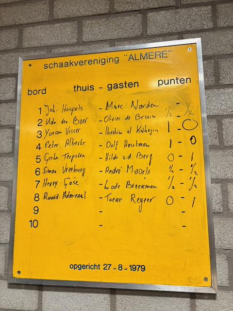 | Norden, M.J. (Marc) | 1890 | Plette, E. (Eibert) | 1654 | ½ – ½ | ||