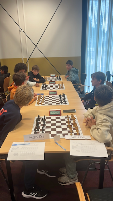 Hierna werd de weg omhoog weer ingezet: tegen Zukertort D3 werd 3,5 – 0,5 gewonnen (inclusief een onnodig pat). VAS D3 werd in ronde 6 met 3-1 verslagen. Dan hangt het vervolgens van de laatste ronde af: tegen wie worden we ingedeeld? Vijf ploegen (waaronder MSK) staan gedeeld 3e met 8 wedstrijdpunten. Op plek 8 en 9 staan nog twee ploegen met 7 wedstrijdpunten. Geen VAS D2, maar directe concurrent Zukertort D2 is de tegenstander. Het wordt 2-2, waar winst wellicht mogelijk was geweest. Nu eindigen we op de 5e plaats met evenveel matchpunten en bordpunten als Zukertort D2, alleen hebben zij iets meer weerstandspunten. Vooralsnog geen kwalificatie voor het NK-D, wellicht nog via een aangevraagde vrijplaats. Jonaël op bord 1: 4,5 uit 7, Leandro (2): 4 uit 7, Elisa (3): 3,5 uit 7 en Max (4): 4 uit 7.