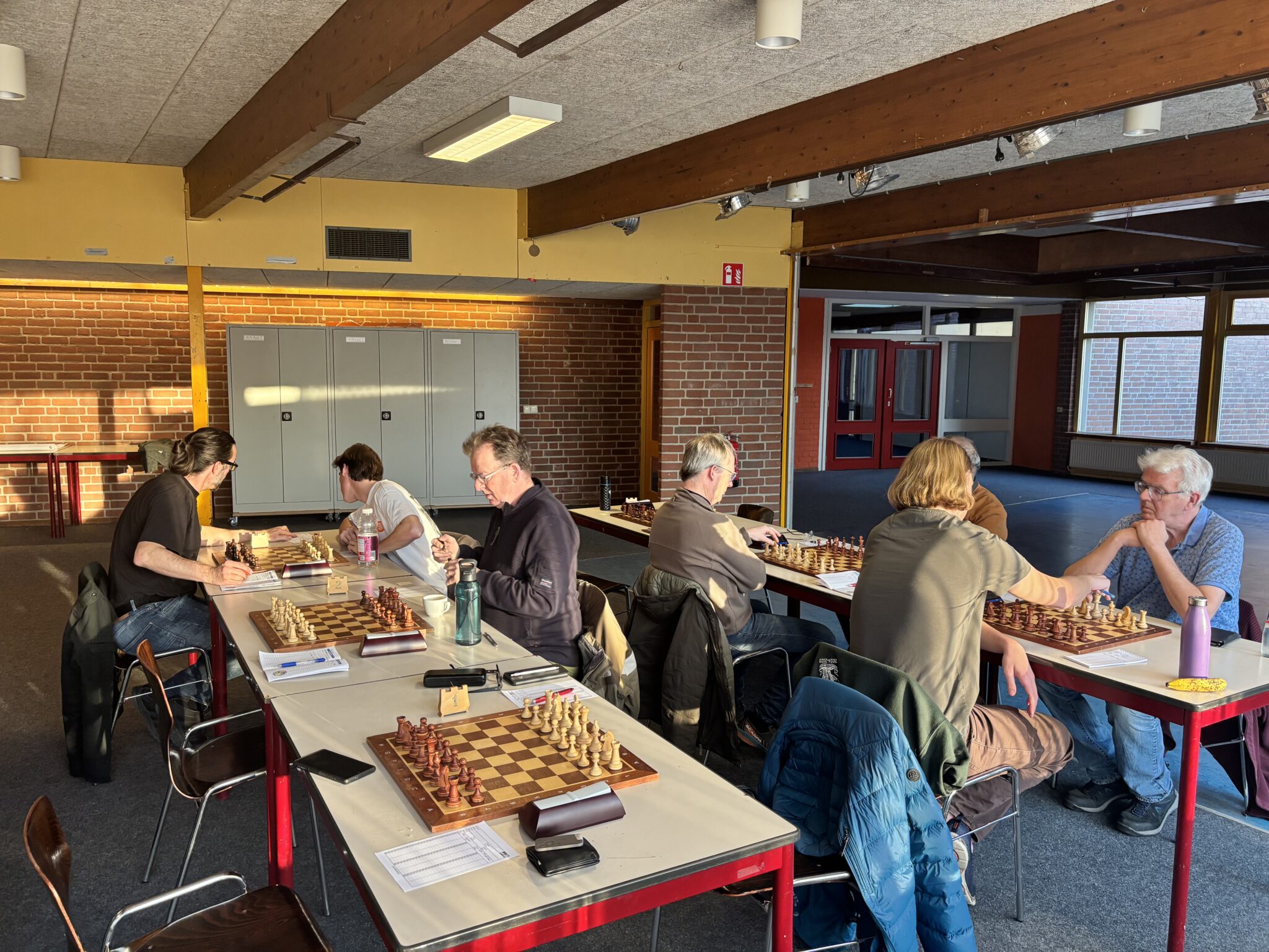 Het plan is duidelijk: winnen met zo groot mogelijk verschil. Dat is natuurlijk makkelijker gezegd dan gedaan. Ben (1) maakt zijn debuut in de SGS competitie en mag meteen flink aan de bak in een zeer positionele partij. Bert (2) zorgt voor de eerste score, een remise. Daar voegt Lode (6) een vol punt aan toe met een degelijke overwinning. Daarna hapert de machine: Olivier (3) komt niet verder dan remise en Jaro (4) verliest, waardoor het 2-2 staat. Marc (2) speelt een eindspel waarvan je weet dat hij dat kan winnen (en dat dus ook doet) en Ben (1) maakt geen fout bij zijn debuut: 2-4 winst.