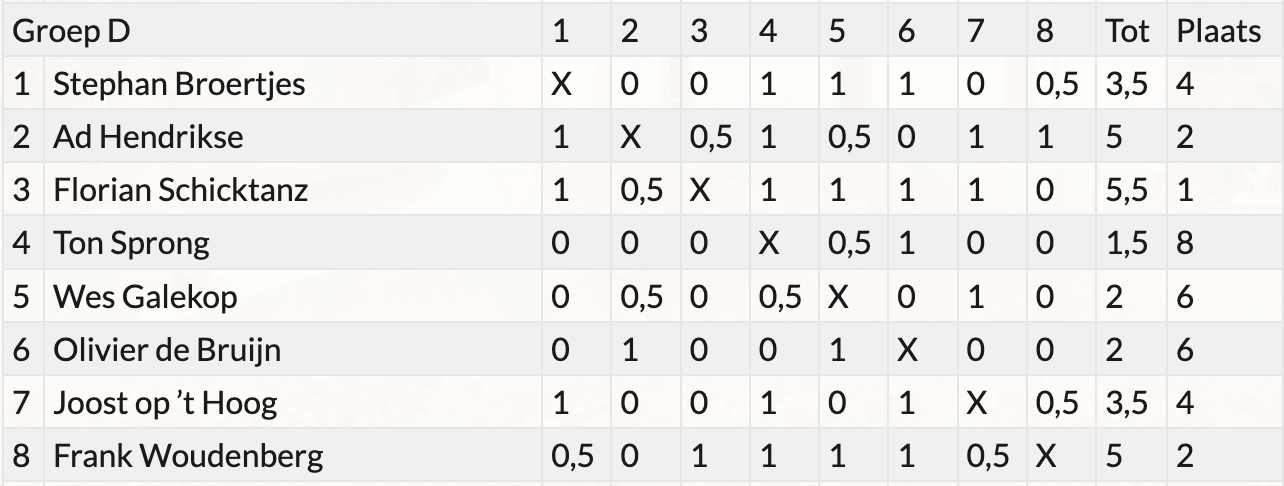 Op zaterdag 12 april speelden Lode en Olivier in Spakenburg bij het Vistoernooi. Een leuk rapidtoernooi, indeling in groepen van 8 spelers op basis van rating en vervolgens 7 ronden spelen. Bij de lunch diverse visgerechten, zoals kibbeling en broodje zalm. De punten waren schaars voor beiden.