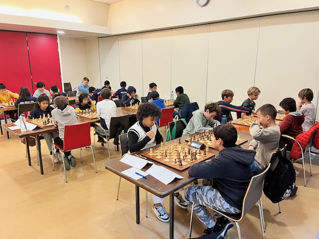 Op de borden ging het moeizaam aan onze kant. Op 7 van de 8 borden (bijna) 100 ratingpunten in ons nadeel. Frank (2) verloor, Henk (5) verloor evenals Dolf (3) en Lode (8). André (6) en Ibrahim (4) deden iets terug (2-4), elk tegen een speler met zo’n 150 ratingpunten meer. Jaro (7) stond verloren als laatste partij in het tuinhuis en in de bied speelde Marc uiteraard nog in een onduidelijk eindspel met dames nog op het bord en een pion meer. Uiteindelijk verloor Jaro en kwam Marc niet verder dan remise. Eindstand 2,5 – 5,5.