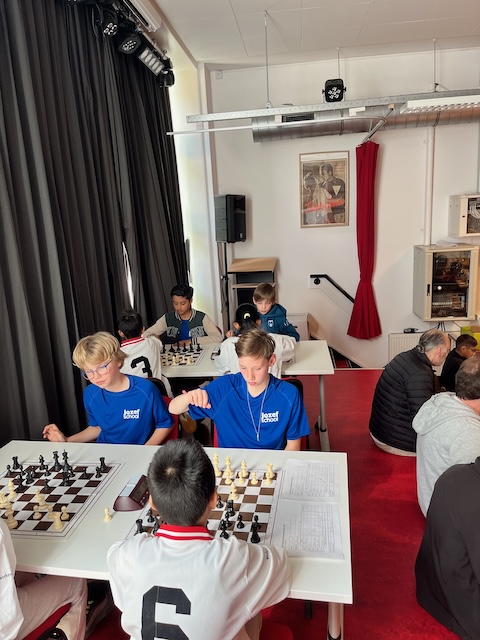 Op zaterdag 1 juni speelde Jozefschool Muiden met een team van 5 MSK-ers (Jonaël, Viggo, Max, Rocco en Mo) de halve finale van het NK Schoolschaken. In Arnhem werd na een spannende strijd de 10e plaats gehaald (van de 32 deelnemers) en die geeft recht op deelname aan de finale.